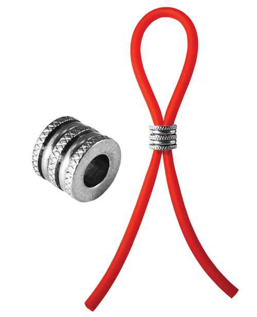 Silicone Lasso cockring with grooved stainless steel Slider.