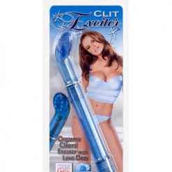 Add some excitement to your day! The Clit Exciter has been ergonomically designed to hug and caress your clitoris with great ease and greater satisfaction. This waterproof adult toy was made to enjoy while upside down. The top of the vibe features an orgasmic clitoral scoop surrounded with love dots to massage and stimulate beyond ecstasy. Take advantage of the extra long shaft and hit that perfect spot without straining. Control the powerful multi-speed vibrations with the dial on the base for a customized sensual experience. This sparkly and silky smooth plastic companion requires 2 AAA batteries (not included) for ultimate sensations. Overall length is 7.75″. Oooh, erotic excitement is waiting for you!