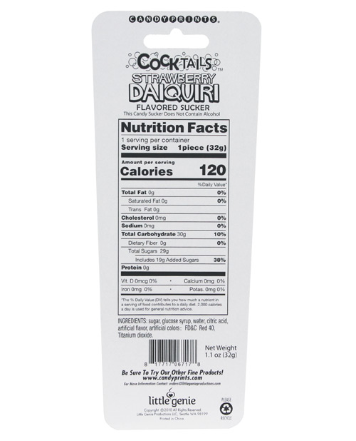 What is shaped like a penis and tastes like a mixed drink? Cheers to a mouthful of great taste. These suckers do not contain ANY alcohol. Rather, they contain high quality natural flavorings. 1.1 oz. Horny Unicorn