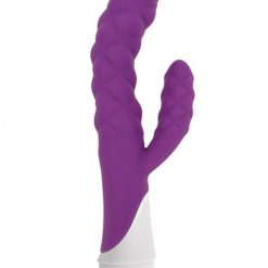 Curve Novelties Gossip Ellen features 3 speeds and 17 functions. Dual motors in shaft and stimulator deliver double the pleasure. Thickly ringed for deeper sensation. Ultra premium SiliconeSilk feels like velvet on your skin. Virtually seamless with a satiny smooth LushTouch handle. Dimensions: 8.375″ X 1.5″. Requires 2 AA batteries. From Curve Novelties. Violet.