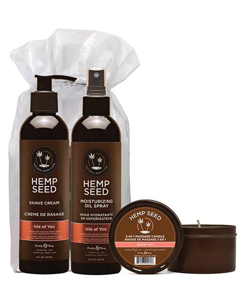 Earthly Body Summer Care Moisturizing Kit – Isle Of You Candle, Oil Spray & Shave Cream