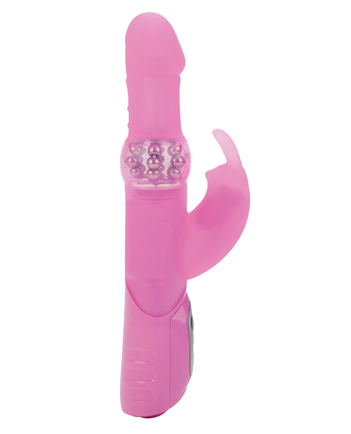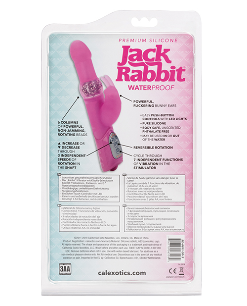 From Cal Exotics comes the Silicone Jack Rabbit. Our all time best selling Jack Rabbit is now made with superior Silicone! It has an intensely stimulating pleasure dome with 6 columns of reversible, non-jamming, rotating beads. It’s got 3 incredible speeds of shaft rotation. It’s a vibrating rabbit with 7 powerful functions of vibration, pulsation, and escalation. Also it has a streamlined, power-packed controller with soft touch buttons and heart shaped LED lights. It has an EZ load battery pack. Requires 3 AA batteries. 5″x 1.75″/ 12.75 cm x 4.5 cm (insertable). 2.25″x 1.5″/ 6.25 cm x 3.75 cm (rabbit).