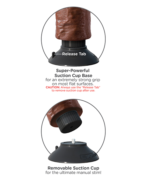 Do you want your first vibrator to look and feel just like the rock-hard stud you’ve always fantasized about? Stop dreaming and get down with the King! Proudly made in America, in Pipedream’s state-of-the-art manufacturing facility, every King Cock is phthalate-free, latex-free, body-safe, and hypoallergenic. Every vein, every shaft, and every head is handcrafted with exquisite detail to give you the most realistic experience ever imagined. Featuring a posable spine, simply bend the cock to your favorite shape to hit just the right spot every time. Amp up the pleasure with a simple twist of the multi-speed dial for ultra-powerful vibrations that will blow you away. You can even take this waterproof vibe into the shower, hot tub, or spa and turn bath time into playtime! The super-strong suction cup base sticks to nearly any smooth, flat surface and offers harness compatibility for strap-on fun. Stick it to the floor, wall, tile, or bedpost and it will stay securely in place. Always use the release tab to remove the suction cup after use. The suction cup can be removed from the vibe by simply unscrewing it from the base for easier handling during manual play. Material: PVC Batteries: 3 AAA- not included Length: 8.5 in. – ( 22 cm ) Width: 1.9 in. – ( 48 mm ) Girth: 6 in. – ( 15 cm ) Insertable Length: 6.9 in. – ( 18 cm )