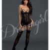 Lace and Netting Long Line Bra Garter Belt and Open Crotch Thong