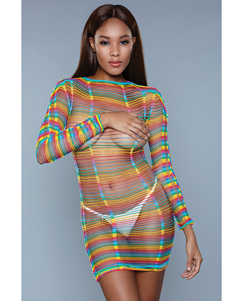 Mid Thigh Length Bodystocking, Long Sleeve W/multiple Cutout Detail Rainbow O/s