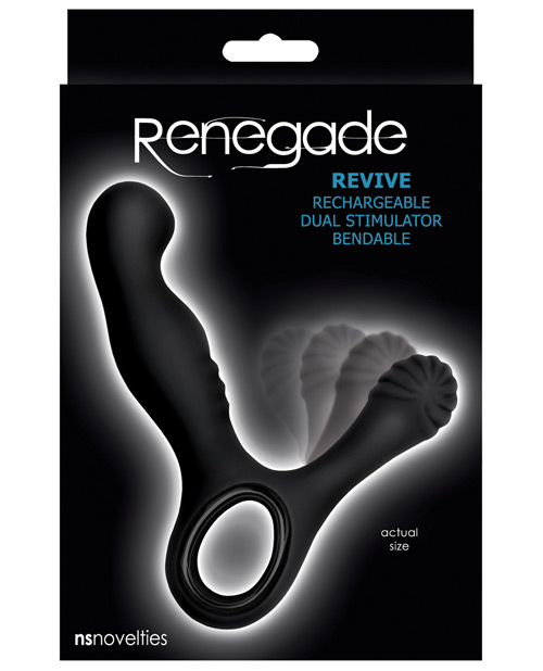 Renegade Revive will rock your world! Fashionably designed to deliver vibrations where you want them most. Revive’s dual motors target the prostate and the testicles. This adjustable wonder bends to reach all the right places. Silicone coated and rechargable premium male massager will ignite your passions and deliver extraordenery satisfaction. Waterproof and suitable for all lubricants. Magnetic USB charger included. Product Dimensions: 5.5 x 1 x 4.1. From NS Novelties.