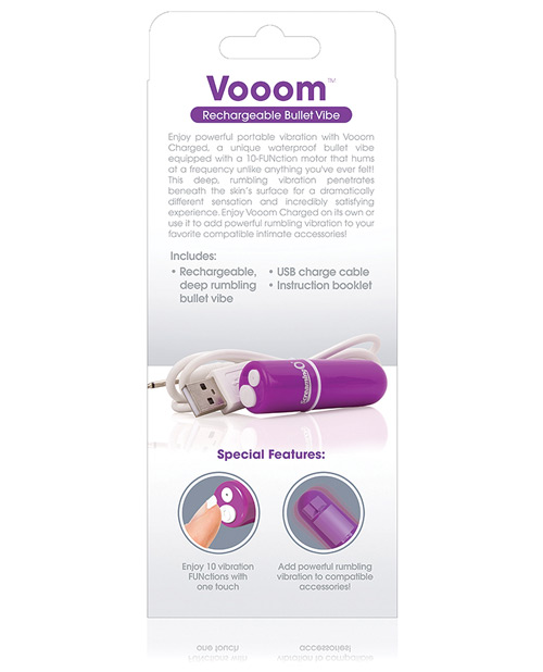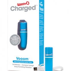 Enjoy powerful portable vibration with Charged Vooom, a unique 100% waterproof bullet vibe equipped with a 10-function motor that hums at a frequency unlike anything you’ve ever felt! Rather than a traditional buzz, this new technology rumbles deep for penetrating pleasure and a dramatically different sensation that can be enjoyed almost anywhere! Its sleek shape means it also can fit most existing Screaming O products and give them an intense power boost. At its highest speed, Charged Vooom vibrates for more than 60 minutes and recharges easily with a convenient USB connector (included) that plugs in securely and stays put for the duration of the charge – hassle-free charging at its finest! Charged Vooom also comes equipped with a 2-year limited warranty, so you can enjoy penetrating pleasure with confidence. Enjoy Charged Vooom on its own or use it to add powerful rumbling vibration to your favorite compatible intimate accessories!