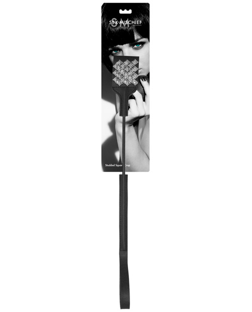 Studded Square Crop from Sex & Mischief. Create unique sensations with our Studded Square Crop. One side is smooth for spanking, stroking, and caressing. The studded side creates more intense play. For added sensations, place the crop in the freezer and invent your own Sex & Mischief.