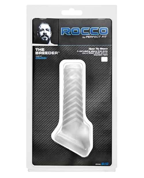 Championed by namesake gay porn megastar Rocco Steele, the stunning The ROCCO(TM) Big Breeder(TM) is Perfect Fit Brand’s first open-ended sheath, known as a sleeve, giving you a fatter shaft and exposed head. Made of SilaSkin(TM), the design uses the proven architecture of our Fat Boy(TM) sheath, but adds a new conical shape where the base loops around the balls, features a thickly ribbed outer texture, a stroker-like nubby interior, and tapers to a fat base to enhance pleasure of the receiver.